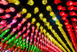The light of the Beautiful Colorful Lanna lamp paper lantern background pattern are northern thai style lanterns in Phitsanulok Thailand.full moon the 12th month Be famous.