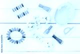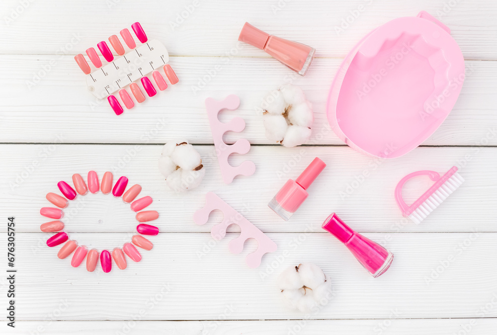 Manicure and pedicure set with beauty cosmetic products for nail care