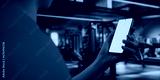 CU Caucasian woman using phone in a gym, coaching training sports app mockup