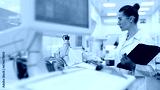 A female scientist controls the operation of devices for laboratory research. Modern laboratory technologies. Medical research centrifuge.