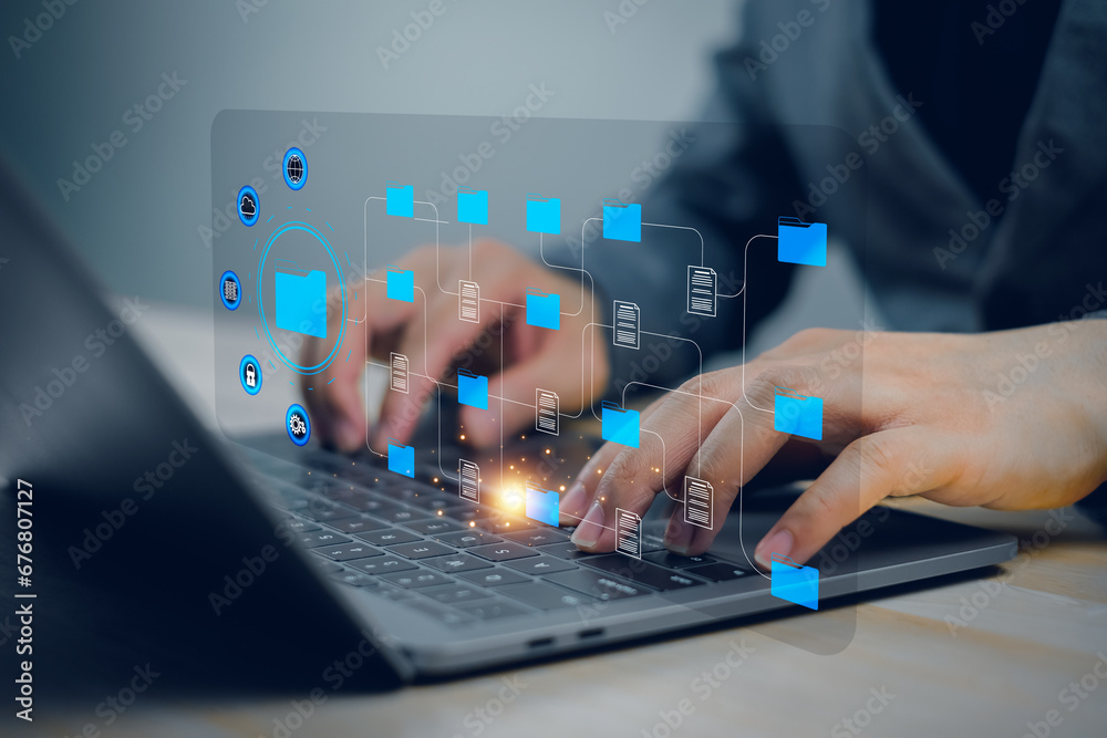 DMS document Management for business data system online concept manage document file digital folder ERP business technology data process for access software office paperless on digital document