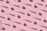 Cannabis bud and joint for smoking. Pattern on a pastel background