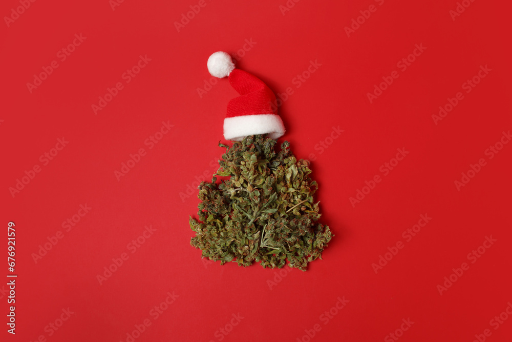 Cannabis bud in the shape of a Christmas tree. Creative Christmas concept