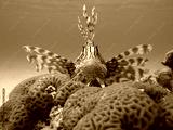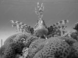 Lion Fish in the Red Sea. Lion Fish in the Red Sea in clear blue water hunting for food .