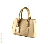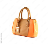 Brown handbag of texture leather isolated on white.