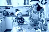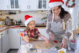 Mom and daughter in the white kitchen are preparing cookies for Christmas and new year. Family day, preparation for the holiday, learn to cook delicious pastries, cut shapes out of dough with molds