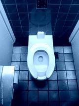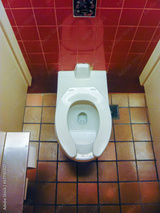 Toilet inside a restaurant in America.