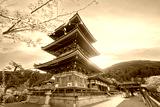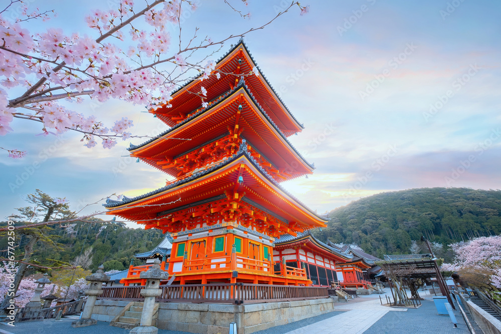 Beautiful full bloom cherry blossom at Kiyomizu-dera temple in Kyoto, Japan during springtime