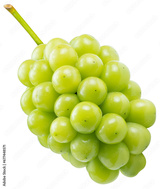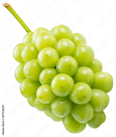 Shine Muscat Grape isolated on white background, Green grape with leaves isolated on white PNG File.