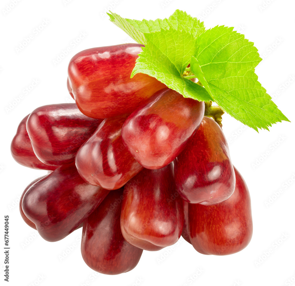 Red Shine Muscat grape with leaves isolated on white, Red Shine Muscat Grape isolated on white background PNG file.