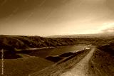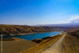 A deserted part of the Zaamin nature reserve in Uzbukistan on a sunny summer day. View of the mountains and reservoir.