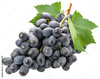 Shine Muscat Grape isolated on white background, Green grape with leaves isolated on white PNG File.