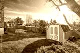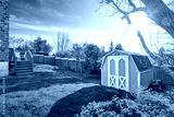 Fenced backyard with small shed