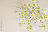 Chamomile daisy flowers bouquet on beige background. Minimal stylish still life floral composition
