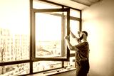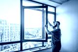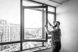 Master adjusting pvc windows with screwdriver. Installation of plastic windows repair and maintenance concept