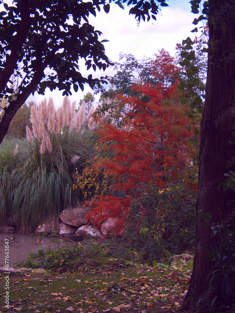 upadek, jesień, park, drzewa, krajobraz, natura, żółty, pora roku, pomarańczowy, kolor, na zewnątrz, piękny, piękno, kolorowy,