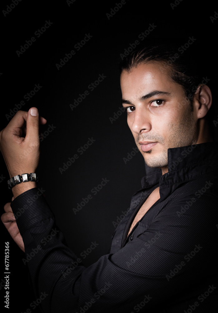 Portrait of young elegant man in the black shirt