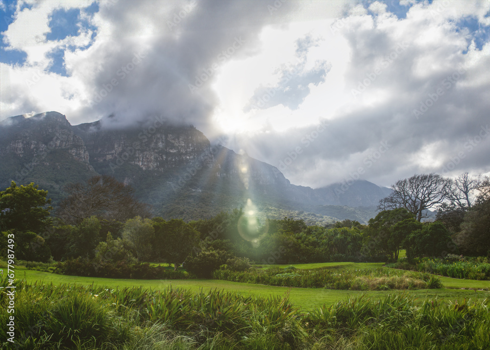 cape town, table mountain , view from the botanical garden, cloudy and foggy day