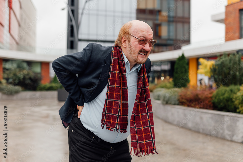Urban Back Pain Alert Worried Senior aged Rheumatism Distress in the City