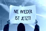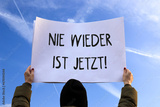 nie wieder ist jetzt schild vor blauem himmel