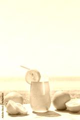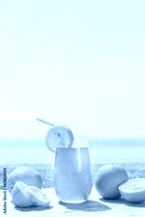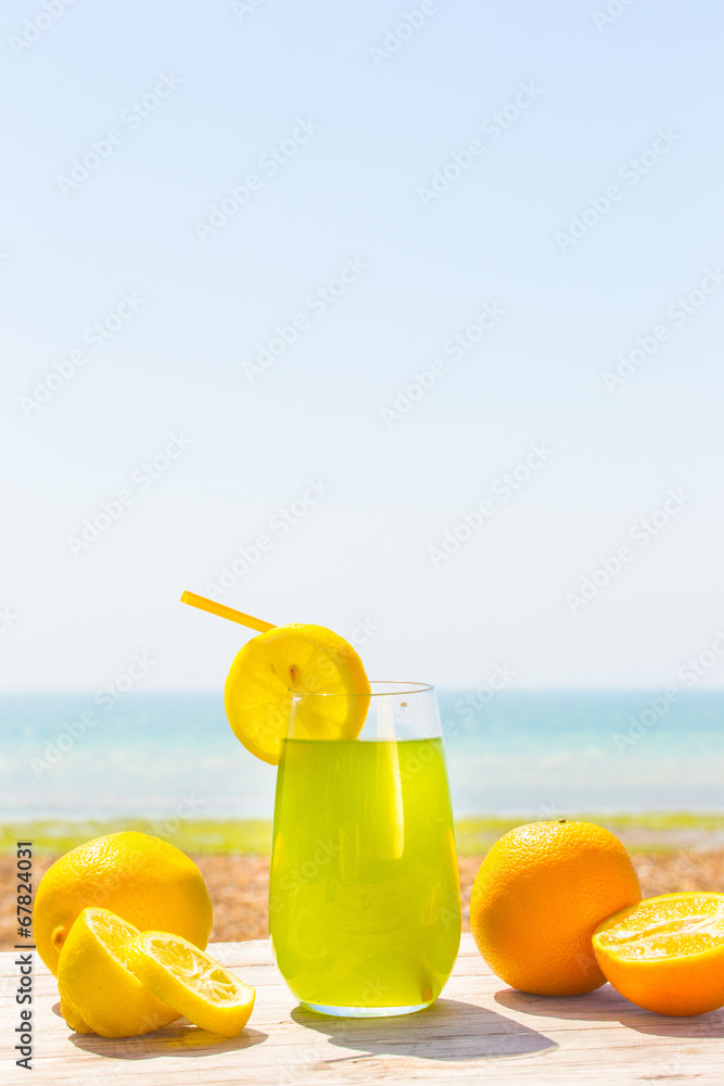 Refreshing fruity juice with the fresh lemon and orange