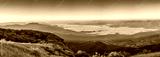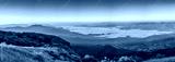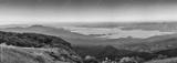 Tropical forest nature landscape view with mountain range and moving cloud mist at Kew Mae Pan nature trail, Doi Inthanon, Chiang Mai Thailand panorama
