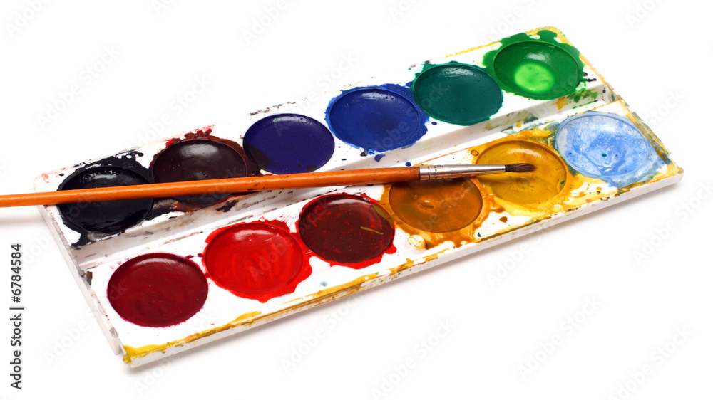 set of water-colour paints and brush