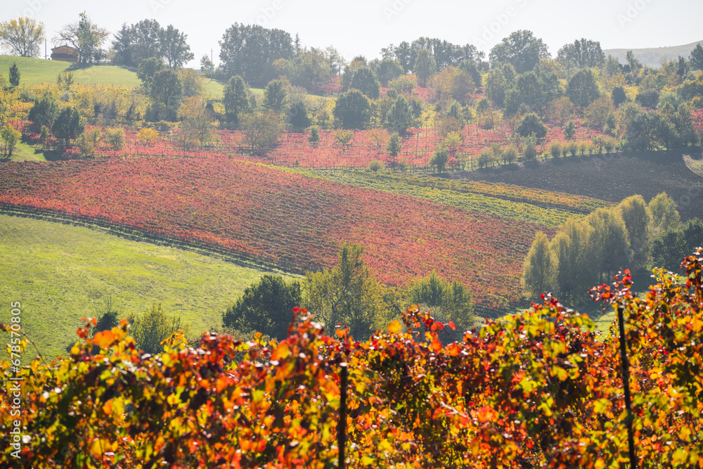 Castelvetro, Modena, Emilia Romagna, Italy. Sunset over the vineyards