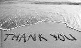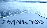 thank you word drawn on the beach sand
