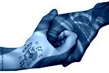 Handshake between Spain and Brazil