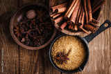 Cinnamon, anise and brown sugar, Christmas holiday baking, ingredients of gingerbread cookies