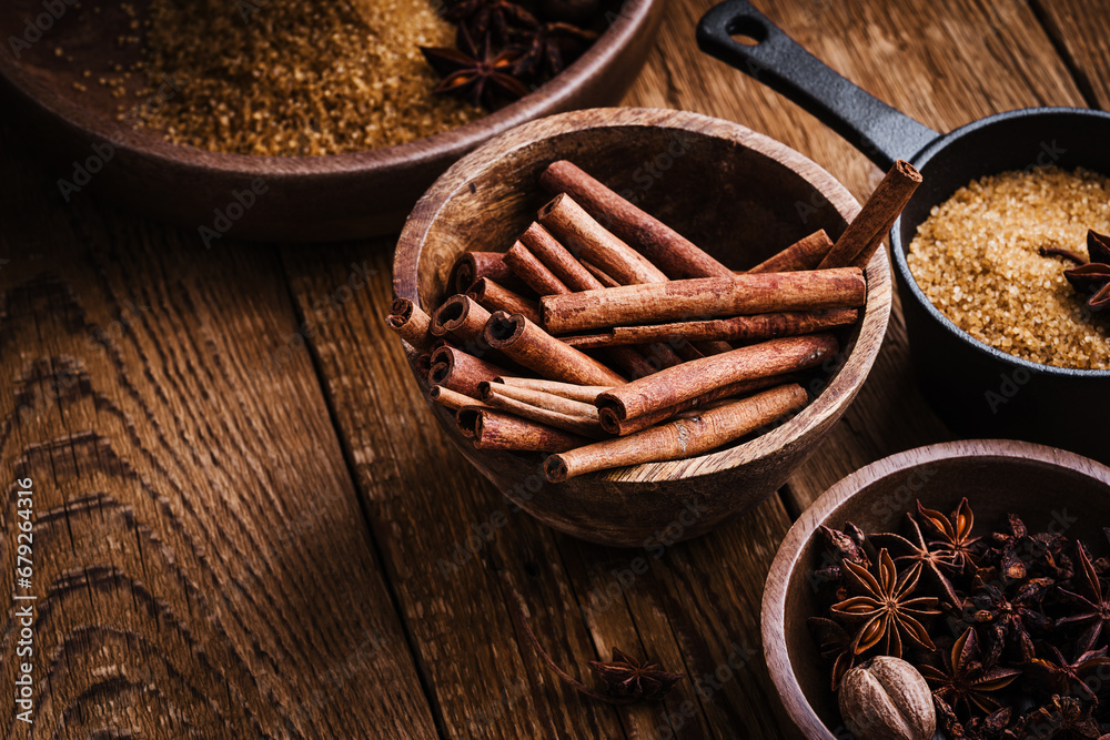 Cinnamon, anise and brown sugar, Christmas holiday baking, ingredients of gingerbread cookies