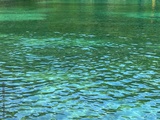 Lake water clear glittering emerald surface ripples.