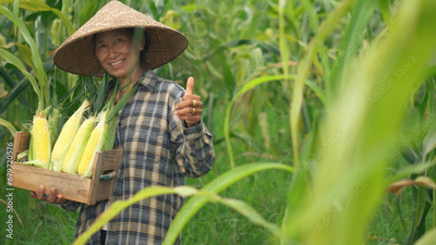 Senior woman farmers harvesting corn during the agricultural season, increasing income.