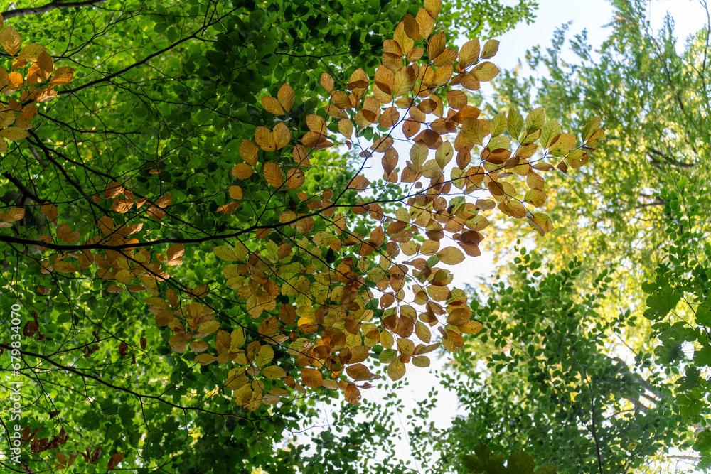 Yellow leaves on a tree in the fall