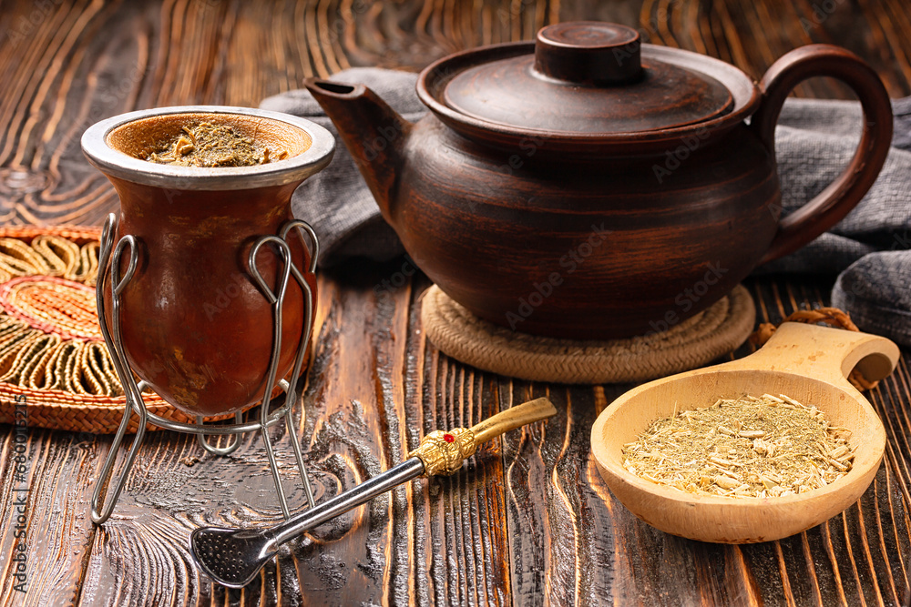 still life with mate tea accessories