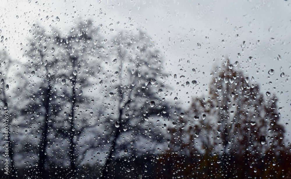 Autumn rain on the glass