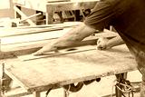 carpenter use saw cut wood formake new furniture