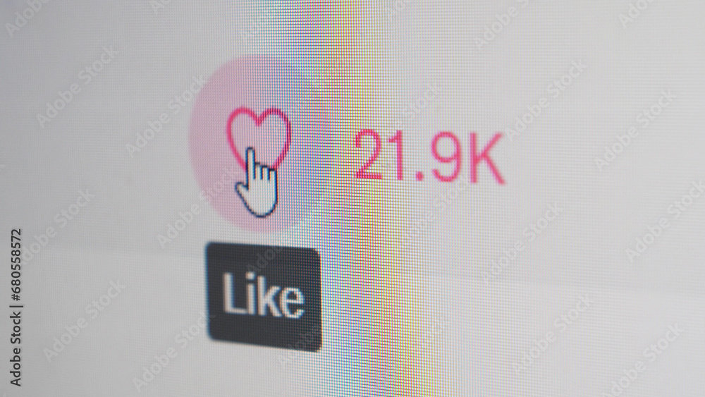 User clicking like button, close up of a computer screen view