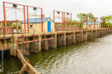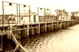 Wooden and metal locks at the River Bann, at the world's largest eel fisher, Lough Neagh, Northern Ireland.