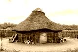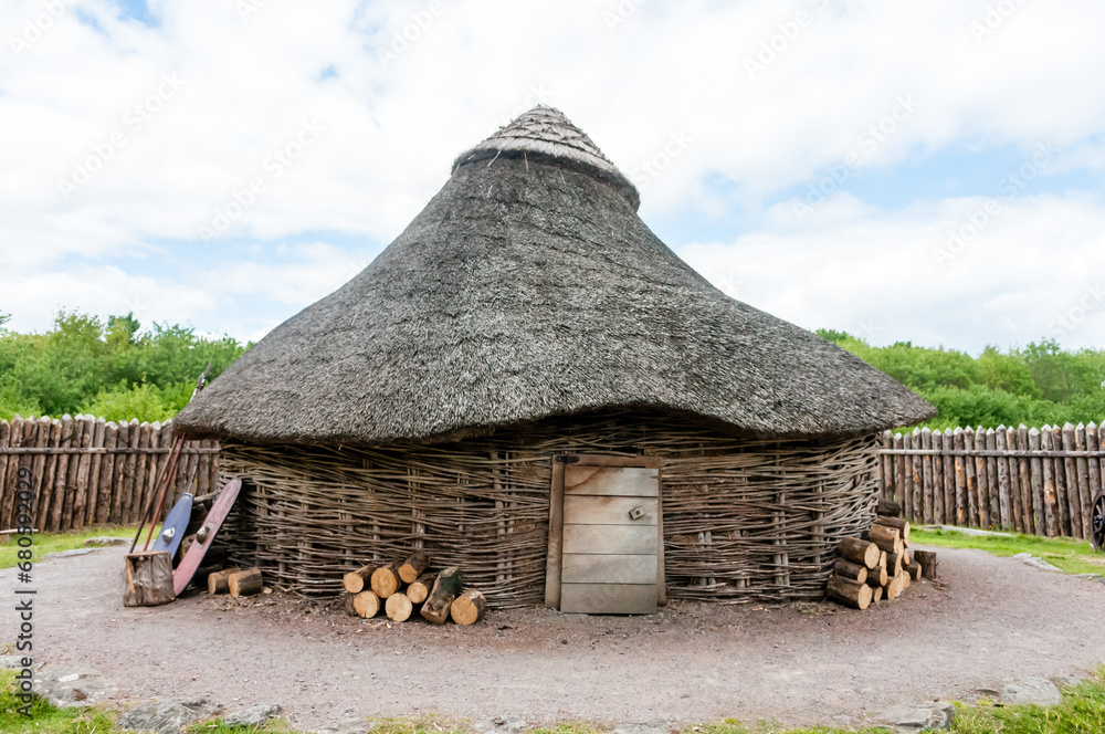 A replica iron-age dwelling, made from willow, hazel and thatch