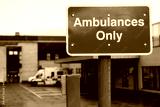 Sign at a hospital Accident and Emergency warning motorists that Ambulances only are permitted