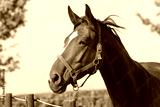 Portrait of a beautiful young brown horse. Close-up