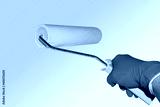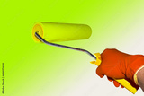 Roller painting in green.A man paints a wall with a roller in a light green color.
