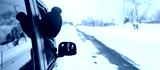 Happy Traveler driving car on snowy road, woman Tourist enjoying snow forest view from the car window in winter season. Winter travel, Road trip, Exploring and Vacation concepts