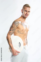 Mężczyzna z waga , trening, odchudzanie, dieta