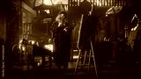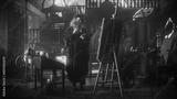 Renaissance Era Concept: Inspired Senior Male Painter Adding Details to his Painting on Canvas. Professional Artist in his Art Studio Painting his Next Masterpiece. Wide Shot