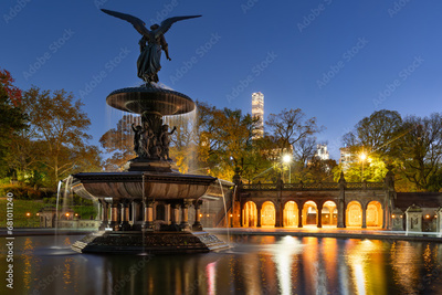 Evening view of Bethesda Terrace and fountain. Central Park, Manhattan, New York City in Fall