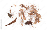 Rotten, old pieces of wood scattered, isolated on white, top view