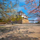 Hikone Castle in Shiga Prefecture during full bloom cherry blossom season